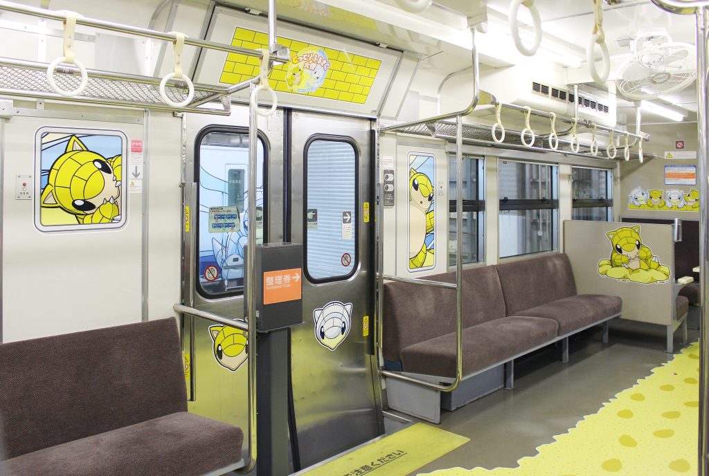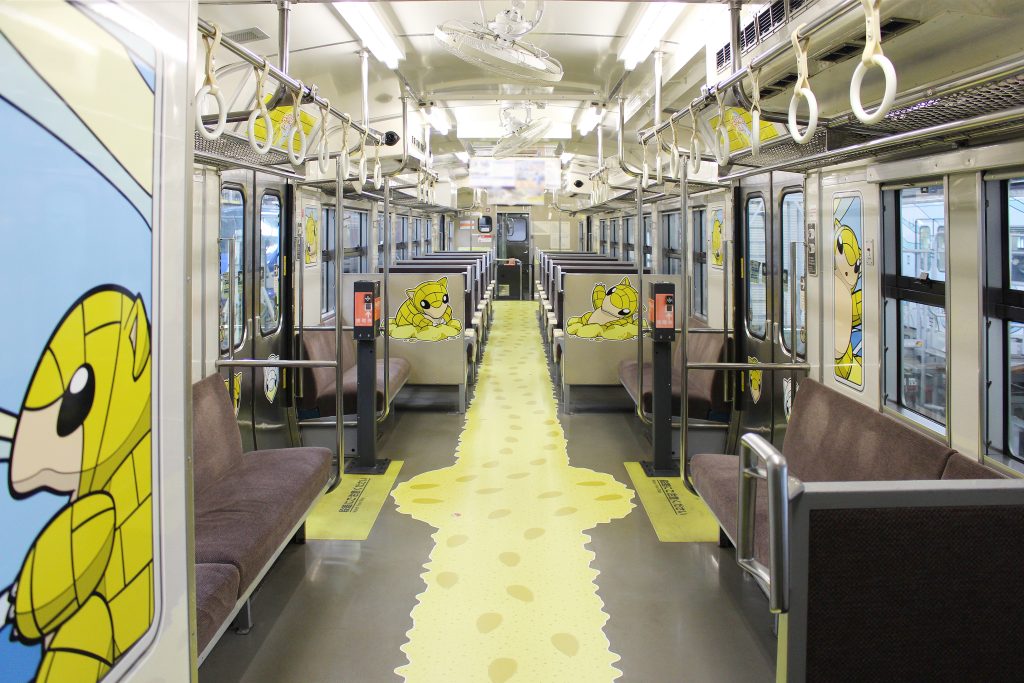 ラッピング列車はサンドがメインの砂丘バージョンとアローラサンドがメインの雪山バージョンの2両が運行中。車体も内装も異なります。