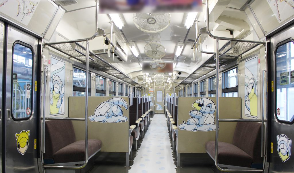 2024年6月28日から、長崎市内を走る路面電車にデンリュウのラッピング電車が仲間入り。車体はもちろん、車内の天井や床などもデンリュウだらけです!