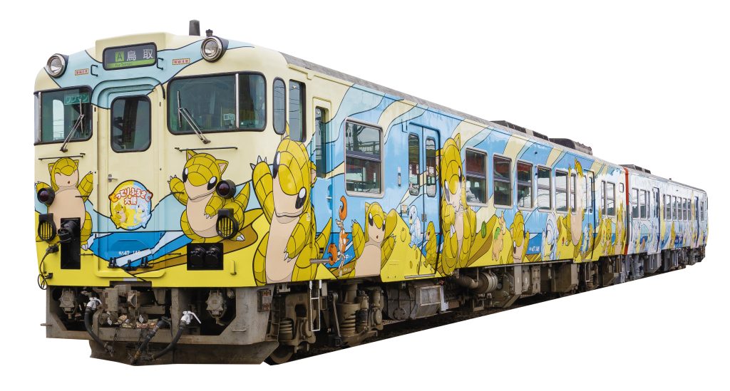 2024年3月10日、サンドの日からとっとりサンド列車の運行が始まりました。運行線区は山陰本線(豊岡~米子)と因美線(鳥取~那岐)。外装の背景は鳥取を代表する名所、鳥取砂丘と国立公園大山をイメージしています。外も中もサンドとアローラサンドだらけでテンションアップ!運行スケジュールは公式サイトにてご確認を。