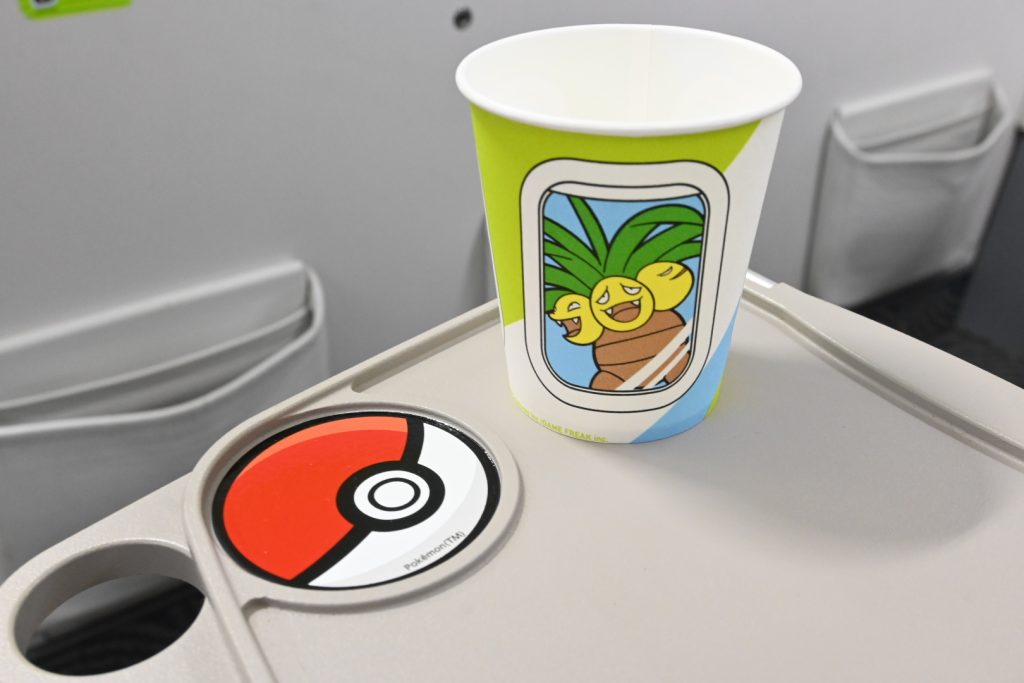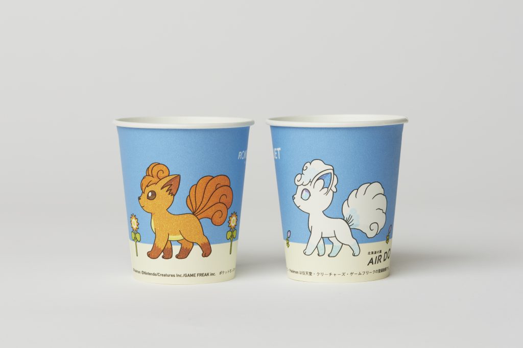 ドリンクサービス時の紙コップもロコンジェットオリジナル。ロコンとアローラロコンが歩いている様子が描かれていて、移動中も癒されること間違いなし!