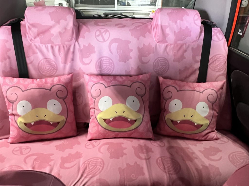 車体も内装もピンク一色。座席シートやクッションにもヤドンが!