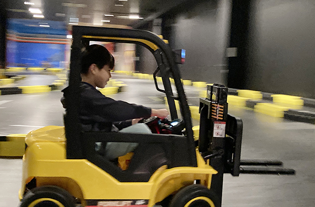 疾走感が出ていますが、子どもがひとりで運転できるスピードなのでご安心を。車はショベルカーとパトカーから選べて、子どもに大人気なんだとか。5分500円から利用できます。