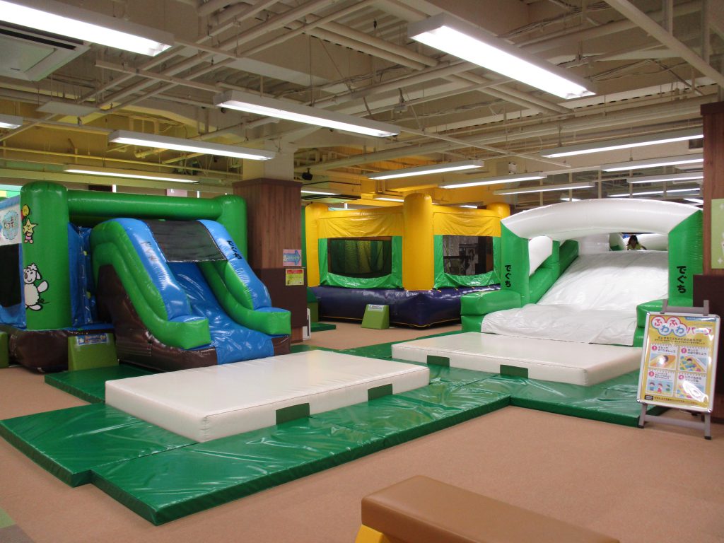 親子で滑れるビッグスライダーを設置した「ふわふわパーク」、抗菌処理されたホワイトサンドで遊べる「サンドパーク」など、楽しい遊具がそろっています。木製ロフトハウスやママゴトごっこに最適な「キッズタウン」は、親子で遊べば子どもたちも大喜び。脚キックで乗る「乗り物パーク」も人気です。小さな子どもは24か月まで限定の「ベビーパーク」、少し大きな子どもにはゲームコーナーもあり、無料(入場料のみ)で遊べます。