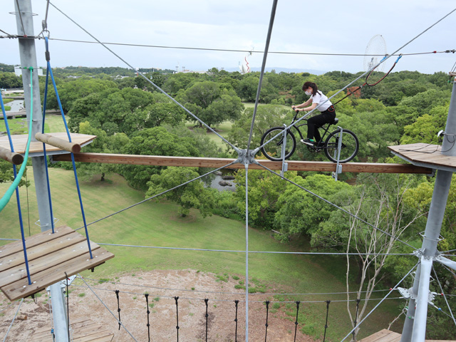 3階層の空中自転車!地上ならスイスイ漕げるけど…?