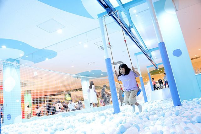 身体を使って遊べるアトラクションは、滑り台やボールプールから成る立体遊具、空を飛ぶような感覚が感じられるジップライン、船型の滑り台がある大型のボールプール、エアー遊具などがある。ユニークな組み立て遊びができるエリアやごっこ遊びができるエリア、乳幼児が安心して遊べる専用スペースもある。子どもに人気のメニューがあるカフェも併設し、要予約で誕生日会や子どものためのイベントにも利用可。カフェスペースには小上がり席もある。初回の会員費と利用料のみでイベントなどにも参加できる。