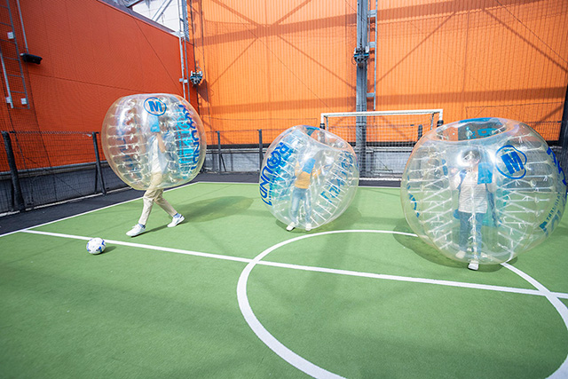 バブルボールを装着して楽しむバブルサッカー(写真はイメージ)