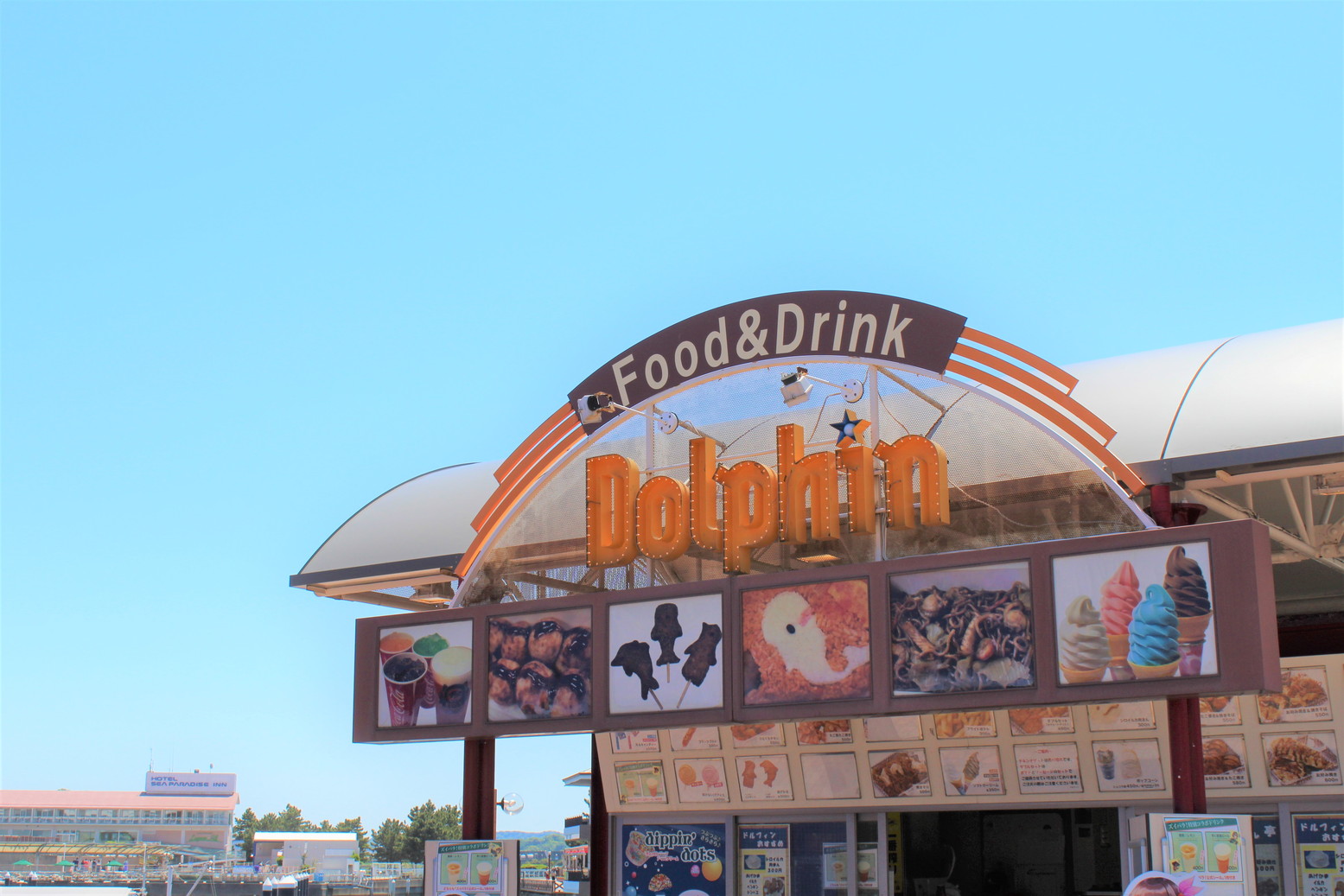 アクアミュージアムを出てすぐの「Dolphin(ドルフィン)」では、ソフトクリームなどのスイーツや食べ歩きにもぴったりな軽食を販売しています。まだまだ遊ぶためにも、小腹を満たしておいてもいいでしょう。