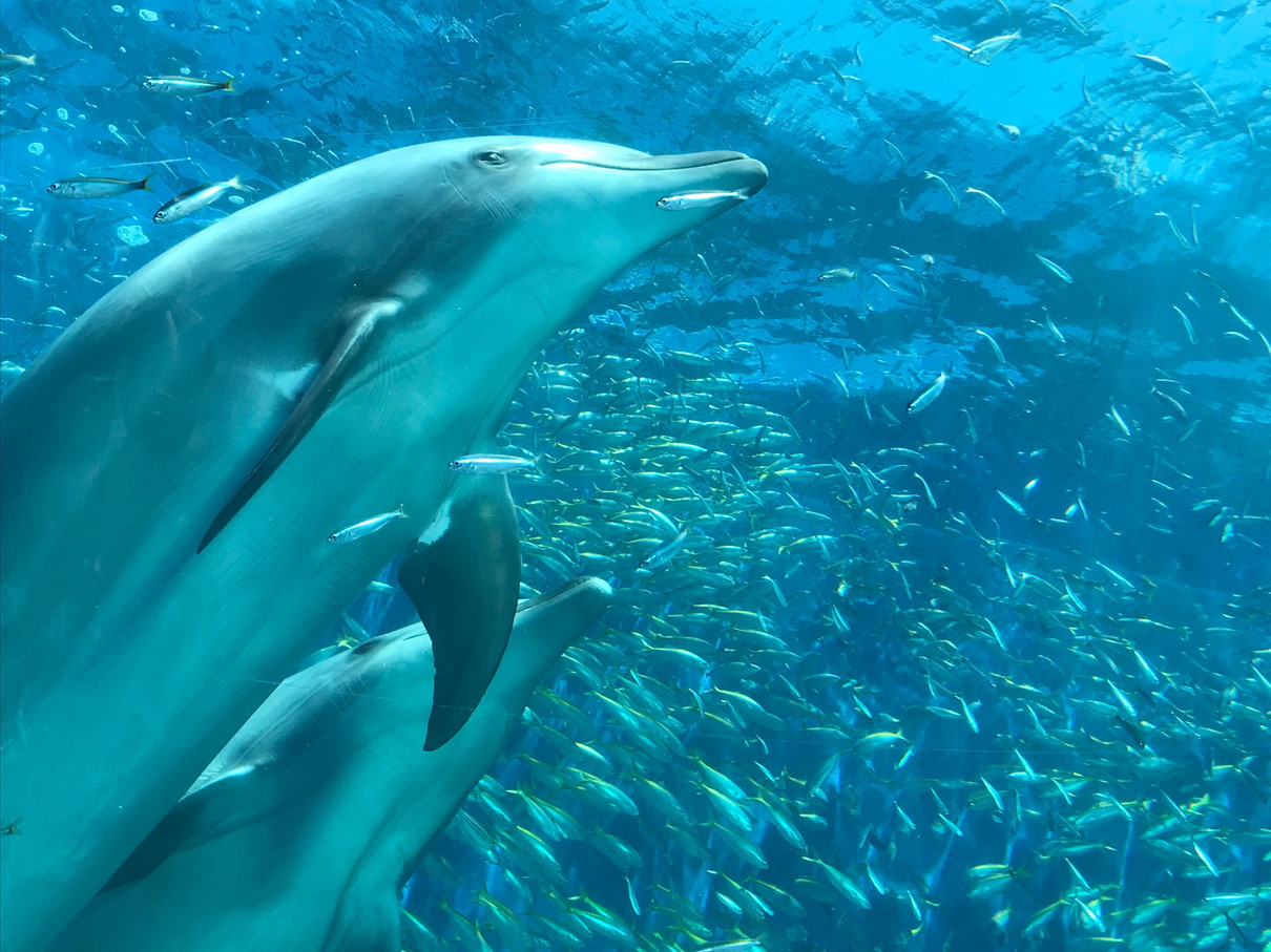 イルカの様子を至近距離で見ることができるのも、ドルフィン ファンタジーの醍醐味。連なって泳ぐイルカは、親子かな?夫婦かな?そんなことを子供と話しながら見るのも楽しいかもしれません。