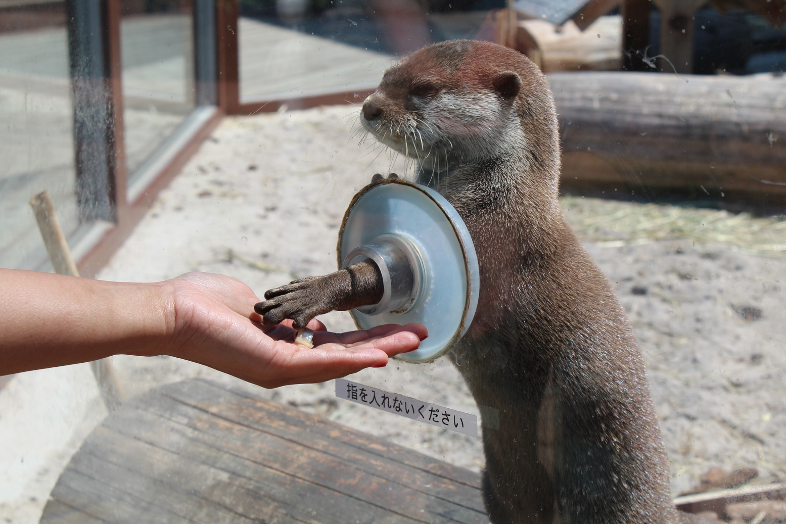 この日握手してくれたのは、コツメカワウソのムーアちゃん。ほかにも、ムギちゃんとアンジーちゃんがかわいらしい姿を見せてくれました。飼育員さんに握手のコツを聞いてチャレンジしてみましょう!