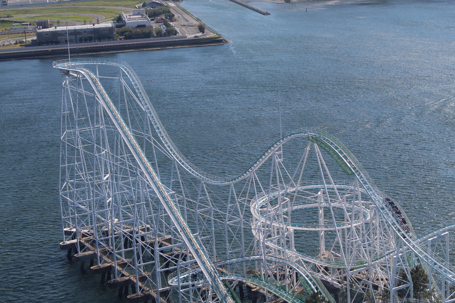 高さ44m からの落下直前に八景島を見渡せば、きれいな絶景が広がっています。