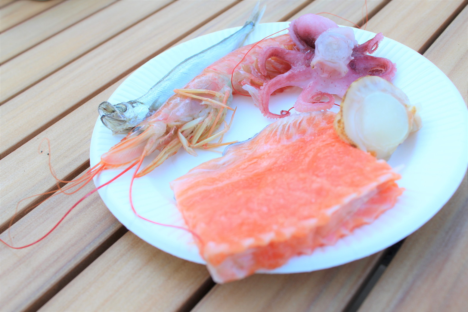 エビやサーモン、タコなど、子供が好きな食材が充実。調味料も用意されているので、好きな味付けで食べてみましょう。
