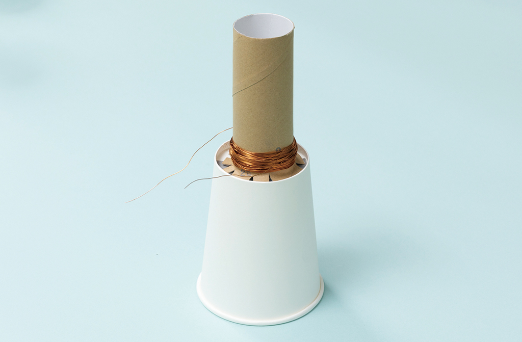 コイルと磁石を使うと簡単にスピーカーができるよ。紙コップで音楽を鳴らして、友だちをびっくりさせてみよう!