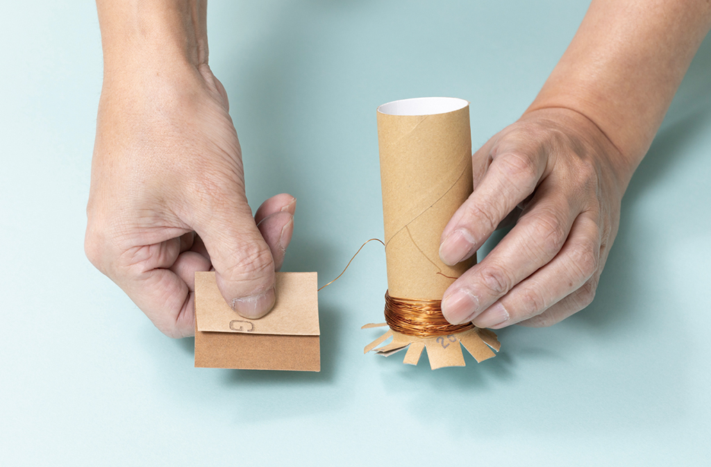 ・エナメル線を巻く回数や磁石の力の大きさによって、音の出方は変わるのかな?磁石を増やしたり、巻き数を増やしたり減らしたりして、実験してみよう。