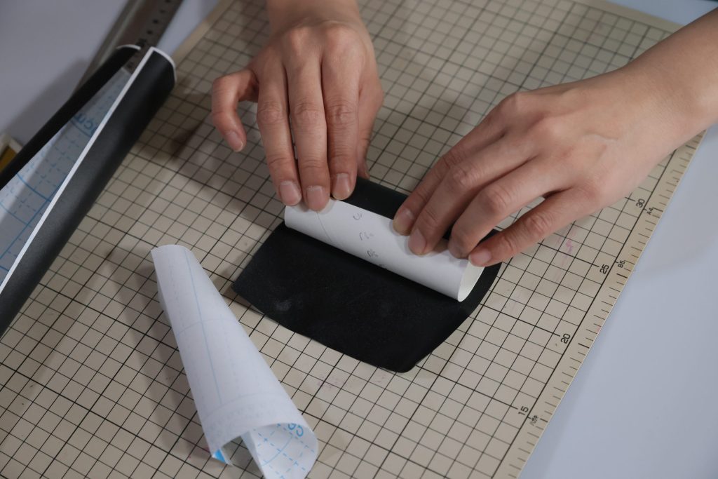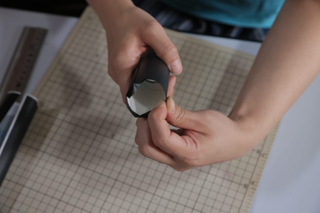 カッティングシートのシールをはがして、芯に巻きつけよう。