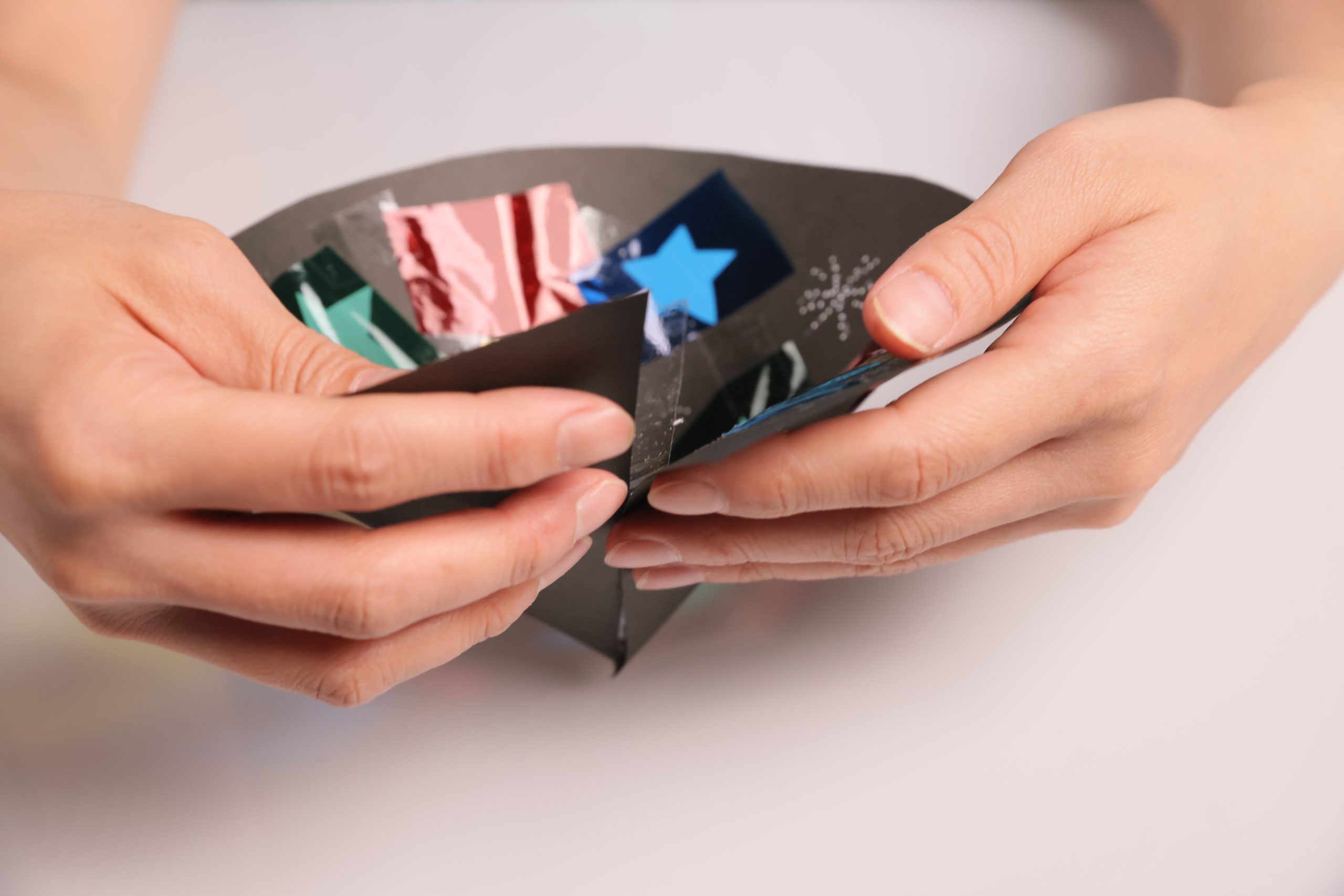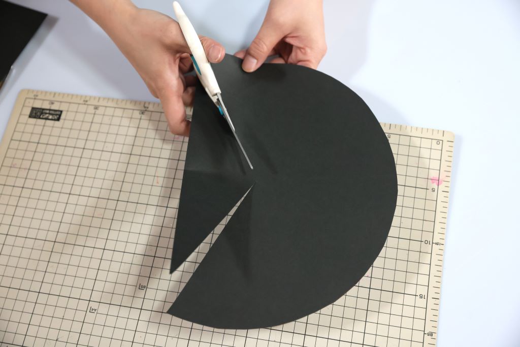 黒い画用紙を使って、紙コップと紙皿で立体的に飾れる作り方を紹介するよ。カッターが使うのが難しいときは、大人にも手伝ってもらってね。