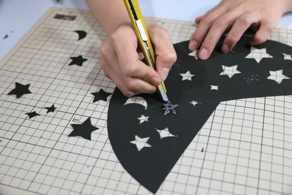 カッターでカットしよう。光を当てるので、カットは少し粗[あら]くてもOKだよ。