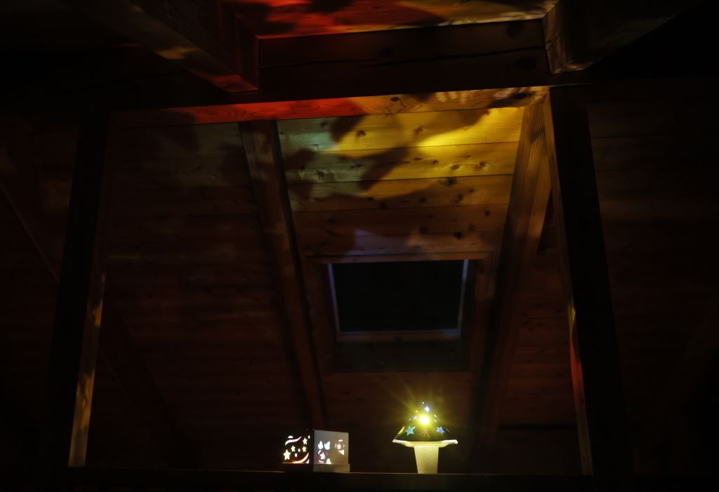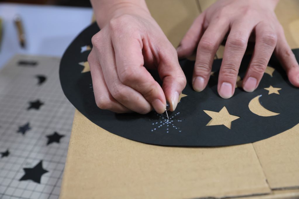 芯の中に豆電球などのライトを入れて、部屋を暗くして照らしてみよう。部屋に星が見えたかな?
