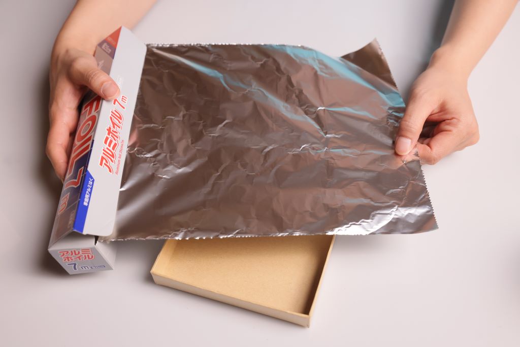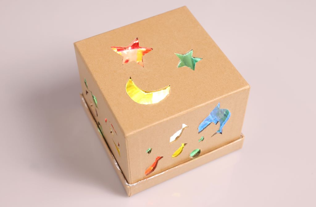 アルミを貼ったフタを下にして、ライトを入れて照らしてみよう。どんなふうに見えるかな?