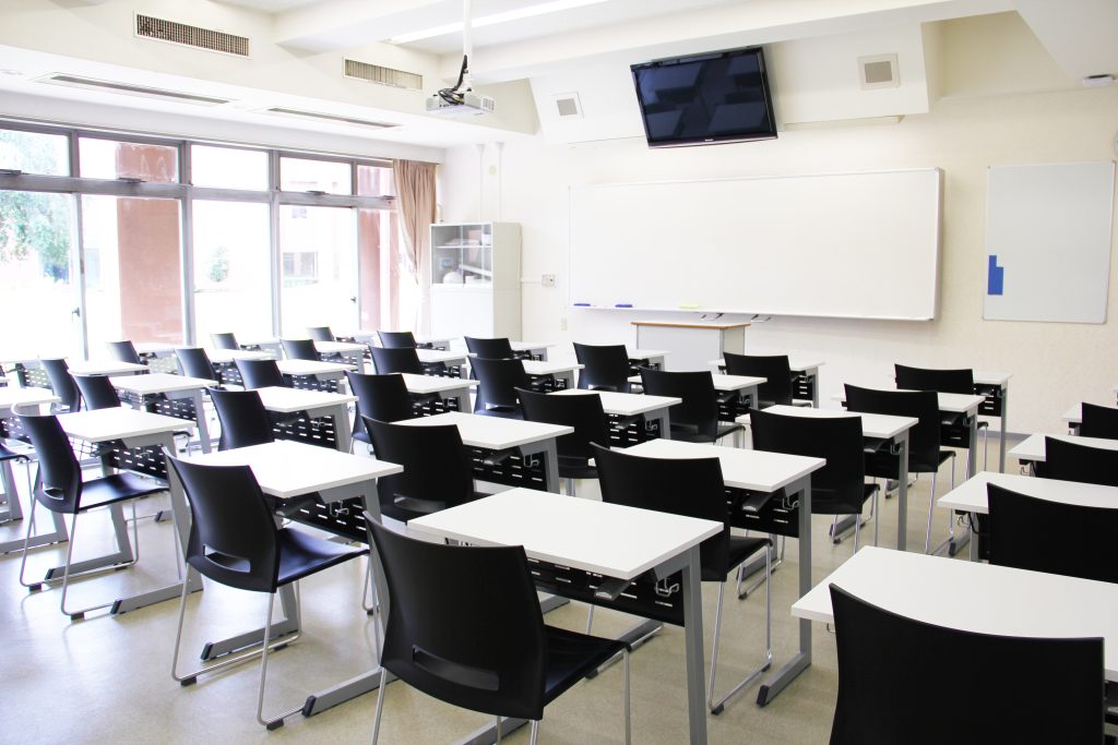 全教室設置のプロジェクターと大型テレビで、授業はプレゼンやアウトプットが活発に行われる