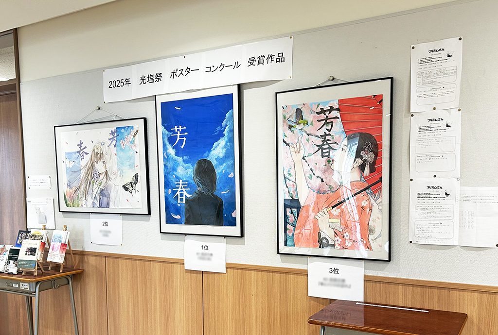 ポスターコンクールの受賞作品掲示。こうした掲示ひとつひとつに、生徒たちの活動が丁寧に共有されている様子が見られる