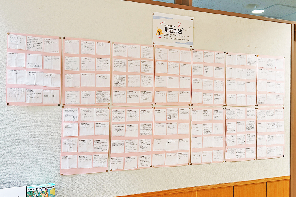 中学1年生の生徒によるおすすめの学習方法。こうした掲示もたくさん!