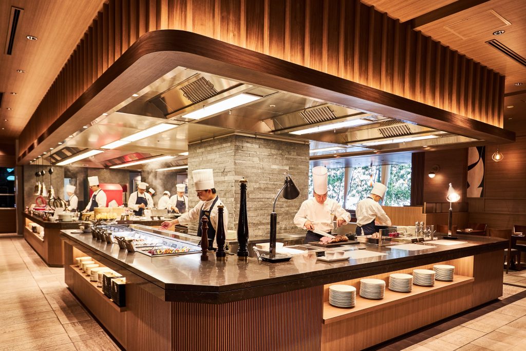 フロアの真ん中に位置するオープンキッチンでは、和・洋・中の専門シェフができたての料理を提供してくれます。選りすぐりの食材が料理として仕上がっていく、ライブ感溢れる時間も楽しみ!各都道府県の特産品や郷土料理が一堂に会する「日本のうまいもの」フェアなど、季節ごとに実施されるさまざまなフェアで、いつ行っても多彩な料理に出合えるのも魅力です。