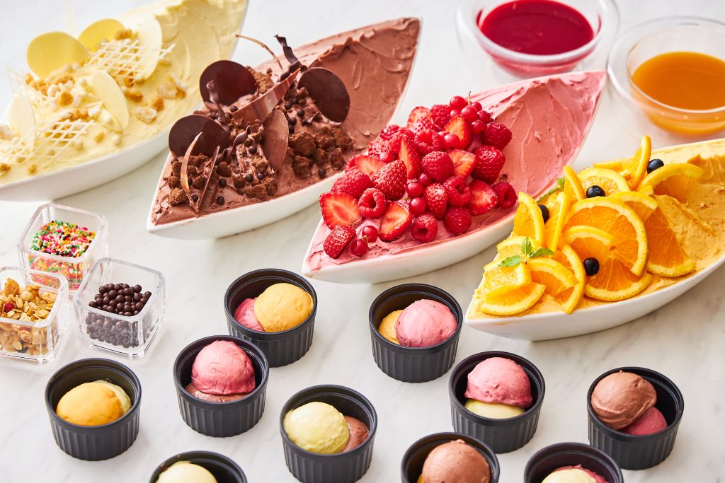 もちろん子どもが大好きなスイーツやジェラートも充実!子ども用食器や椅子の用意をはじめ、授乳室やオムツ交換台の設備も揃っています。ベビーカーでの入店も可能なので、小さな子どもがいるファミリーにも安心です。数々の絶品料理を、落ち着く空間で心ゆくまで楽しんでくださいね。