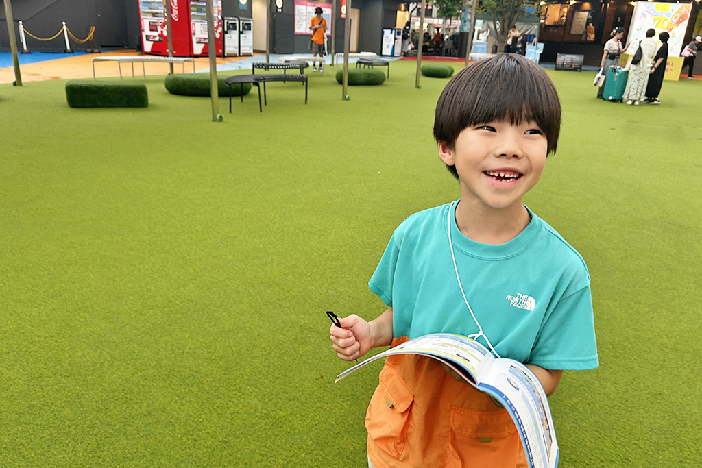ここも5分くらいでクリア。7歳の握力だと、冊子にメモを書き込むのにやや苦労していたので、クリップボードを持っていくか同行者が代わりに書いてあげてもいいかもしれません。東京ドームシティ内のジオポリスB1物販ブースでは、バインダーも販売されていますよ!