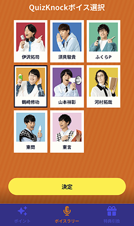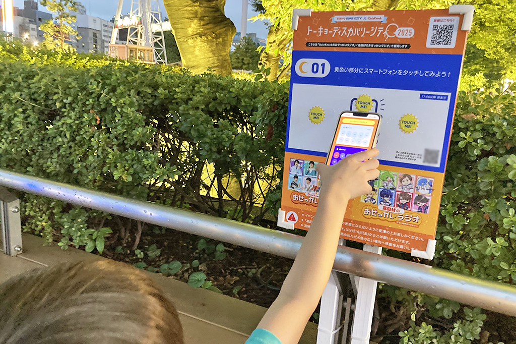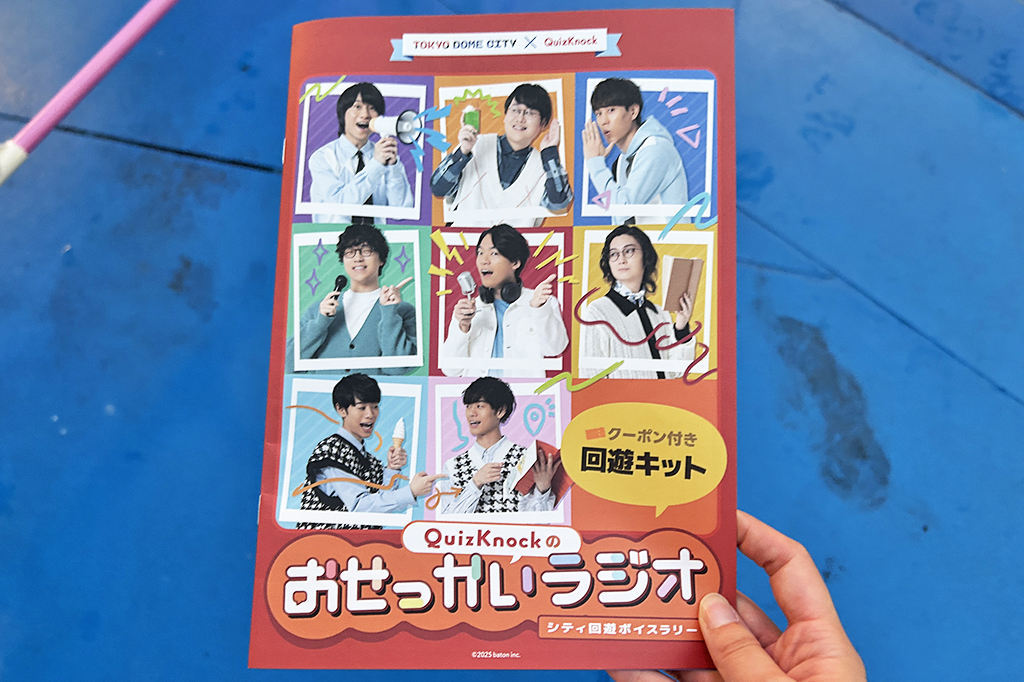 「QuizKnockのおせっかいラジオ」は、東京ドームシティ内を歩いて設置されたスポットをめぐり、QuizKnockメンバーのボイスを集めるラリー式のゲーム。ボイスは1キットにつき、メンバー8人から1人を選択できます。