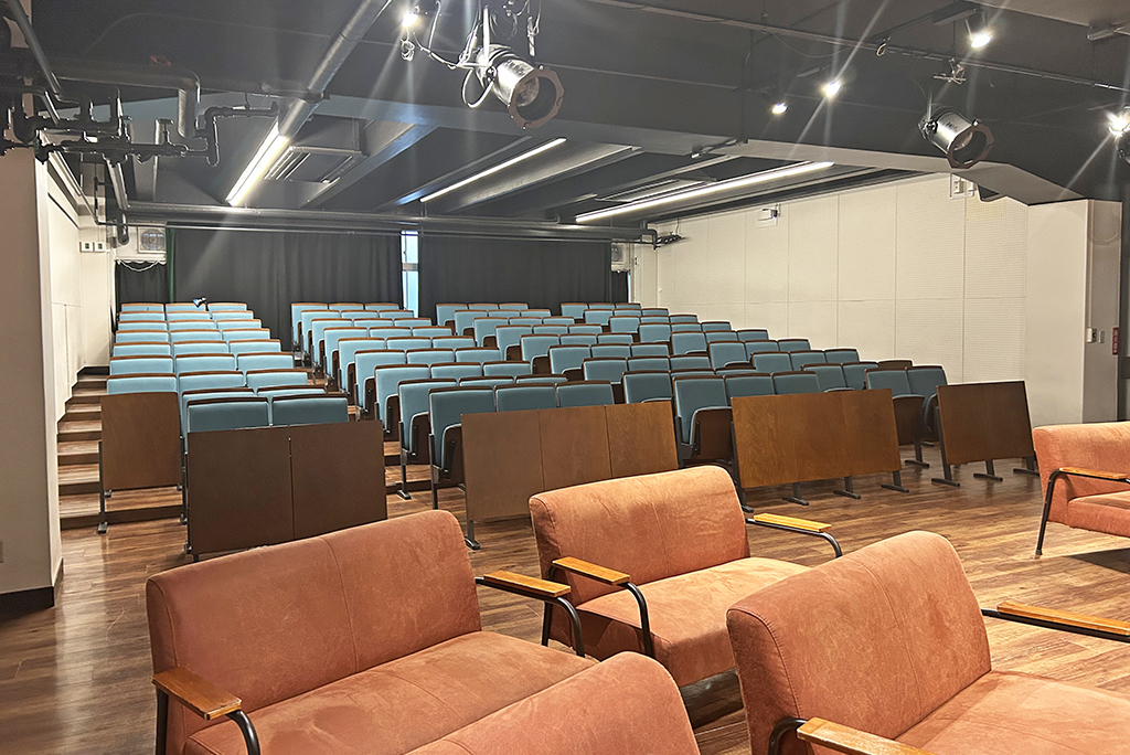 一般的には「視聴覚室」となる場所ですが、この学園ではアウトプットする機会が多いので、椅子なども本格的。壁一面の大スクリーンを使い、仲間や大人たちに向けたプレゼンテーションができます。