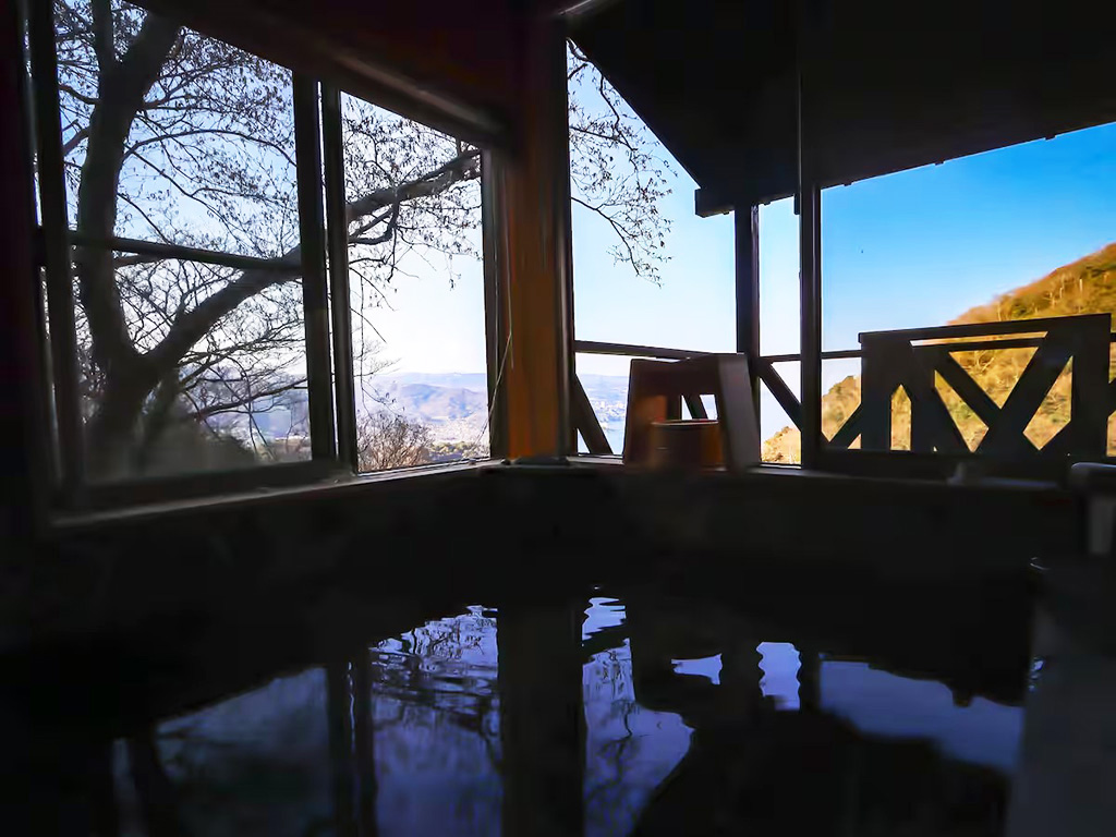 網代の閑静な別荘地に立つ宿は、すべての部屋から海や山を見渡せる贅沢なロケーション。夜は都会では見られないような星空が広がり、寝室ではLED照明で星空を再現するサプライズ!天然温泉を引き込んだ石造りのお風呂は、窓を開けると露天風呂気分を味わえ、年に十数回ある熱海海上花火大会を湯船から眺めることもできます。寝室はシモンズ製ベッドと畳の布団から選べ、快適さもバッチリ。絶景と温泉、非日常の癒しを同時に楽しめる一軒家です。