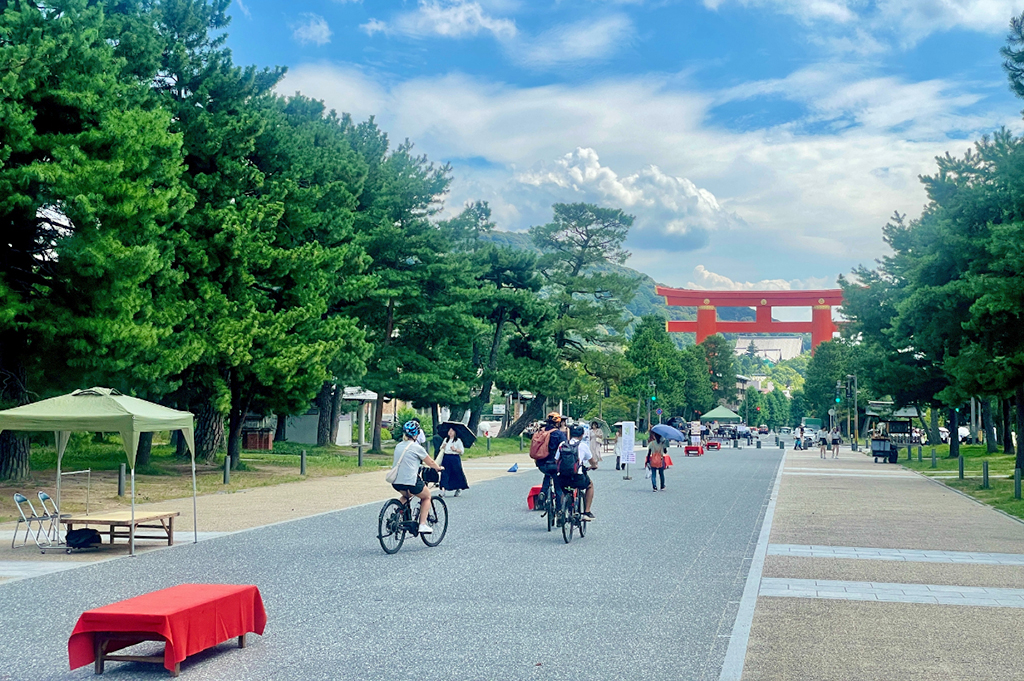 岡崎公園は平安神宮の参道に通じており、ポケふたは平安神宮の応天門側のすぐそばにあります。