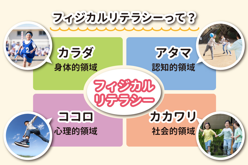 フィジカルリテラシーとは、結果や成績にフォーカスするのではなく、生涯にわたって運動やスポーツを楽しみ、健やかな成長を促す考え方です。簡単にいうと「自分の身体を上手に使って、運動に親しむ基礎力」といえるでしょう。難しく捉えてしまいがちですが、楽しく運動やスポーツに触れていれば自然と身につきます。