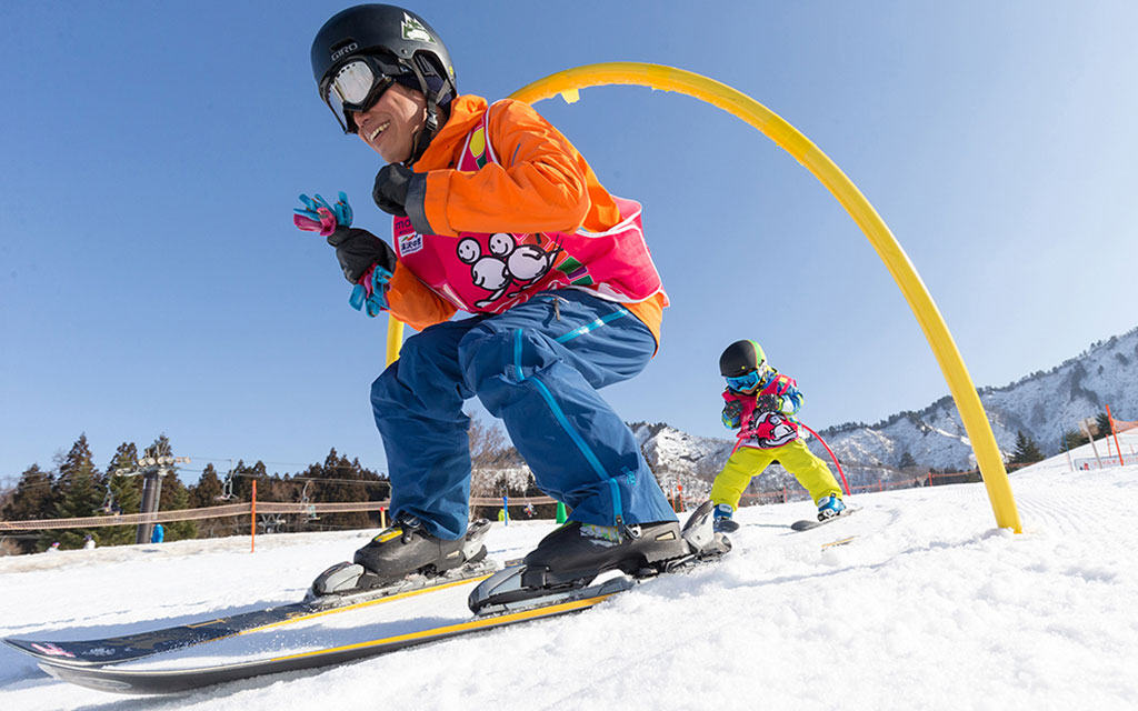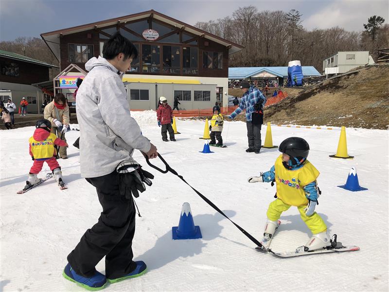 このスキー場で3~5歳を対象に開催されるのが「スノーキッズプログラム」。板・ブーツ・ヘルメットを装着し、ママパパがロープで引きながら、ゆっくりと雪上を滑ります。専属スタッフの指導のもと、平らな専用エリアで実施するため、スキー&スノボが初めての子どもでも安心して「滑る楽しさ」を体験できます。期間限定なので、開催日程は公式サイトを要チェック!