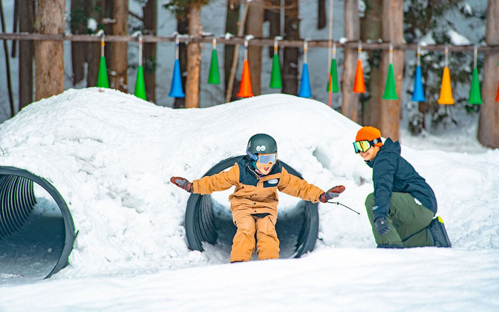 コース上の障害物を攻略していく「ザ・パーク」、重心移動が自然に習得できる「ザ・ウェイビー」、モーグルコースのような気分を味わえる「ザ・バンピー」など、スキー&スノボ上達に必要なバランス感覚を楽しく身に付けられるコースが揃っています。