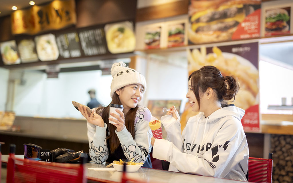 滑り疲れてお腹が空いたら、自慢のスキー場グルメを味わいましょう!気軽に食べられるたこ焼きなどの軽食から、ピッツァや洋食まで、シーンに応じていろいろ選べちゃいます。