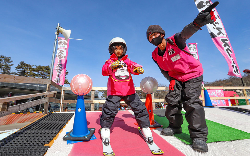レッスン専用のオリジナルギアやおもちゃ、3種類の人工マットを使用することで段階的に上達できる「パンダルマンキッズスクール」。ゲーム感覚で取り組めるプログラムなので、飽きずにスキーに親しむことができるんです。各校には幼児体育指導員の資格をもつインストラクターが所属。子どもを指導するスペシャリストなので、安心して子どもを預けられます。