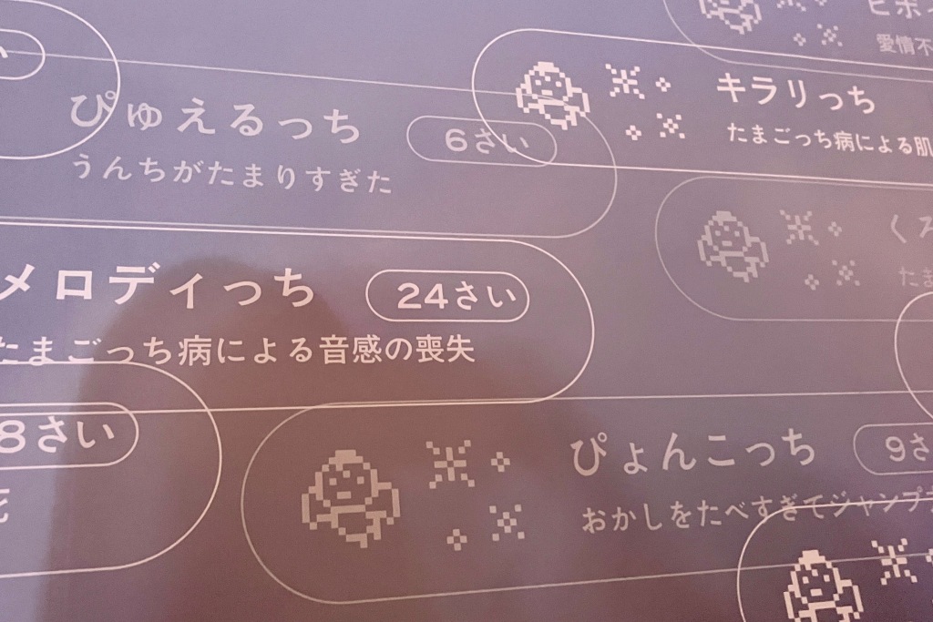壁には、最後を迎えたたまごっちたちの年齢と理由が書かれています
