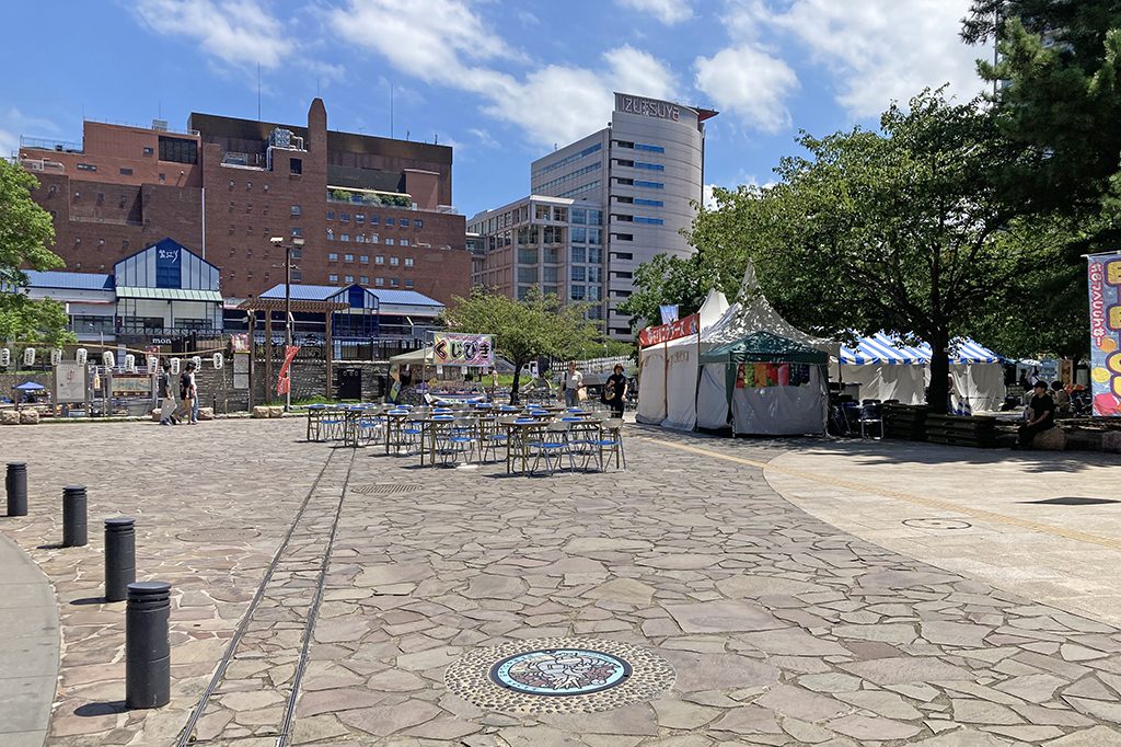 場所は、リバーウォーク北九州の南端あたり。小倉城虎ノ門口がすぐ近くにあります。