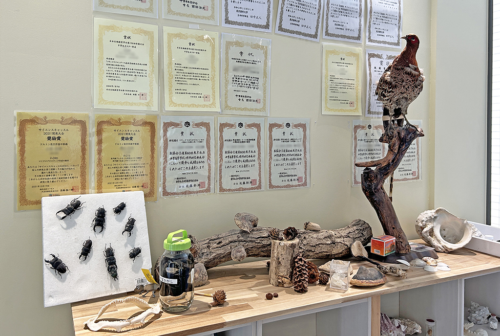 校内には、生徒たちが受賞した賞状や成果の一部があちこちに