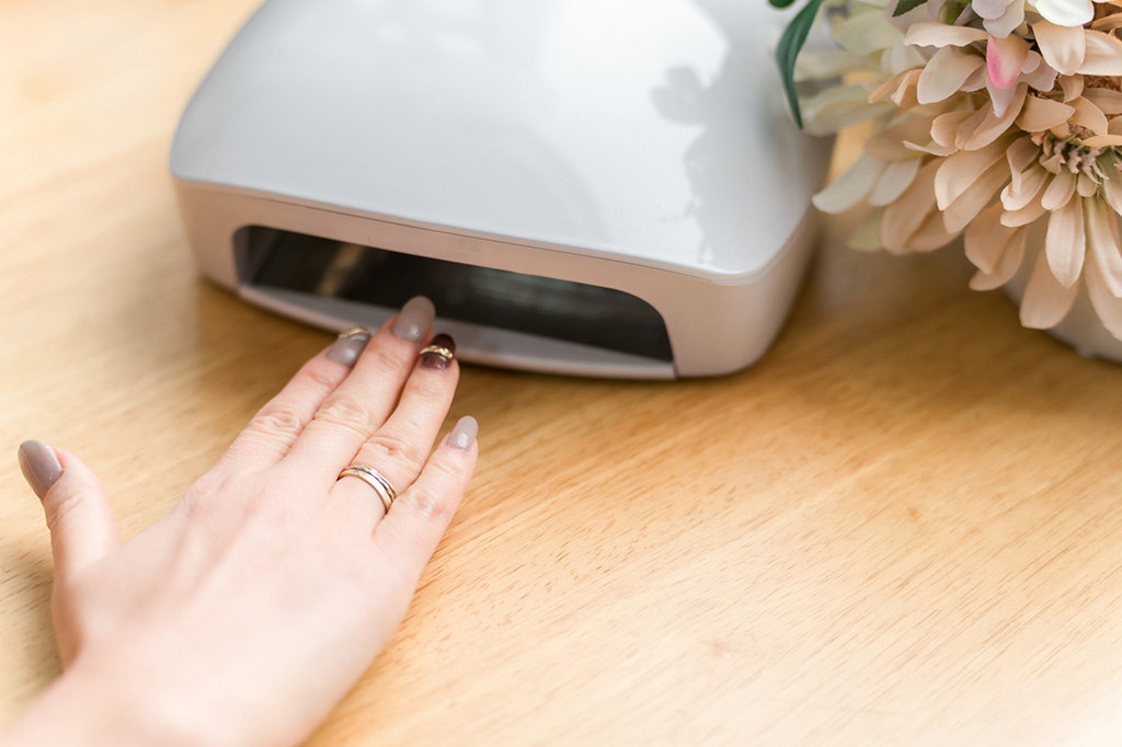 最近は、おうちでセルフジェルネイルを楽しむ方も多く見られます。ジェルネイルとは、樹脂でできた特殊なジェル爪に塗り、UVライトやLEDライトで硬化させるネイル技術です。乾かすタイプのネイルポリッシュと比べて、ツヤがあり発色がよく耐久性もあるのが特徴です。
