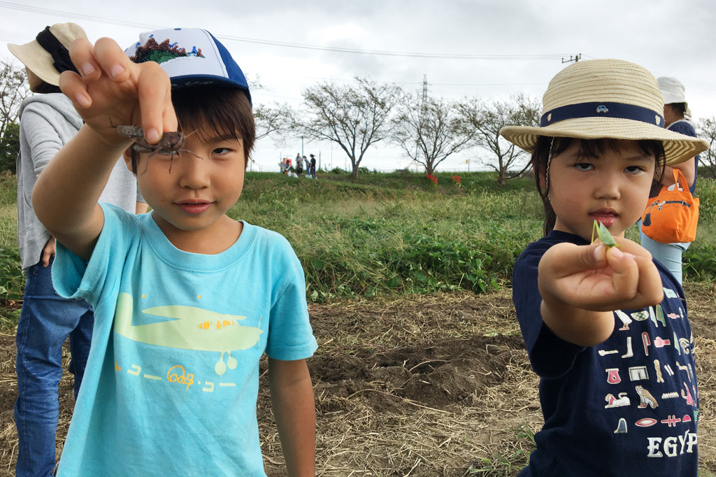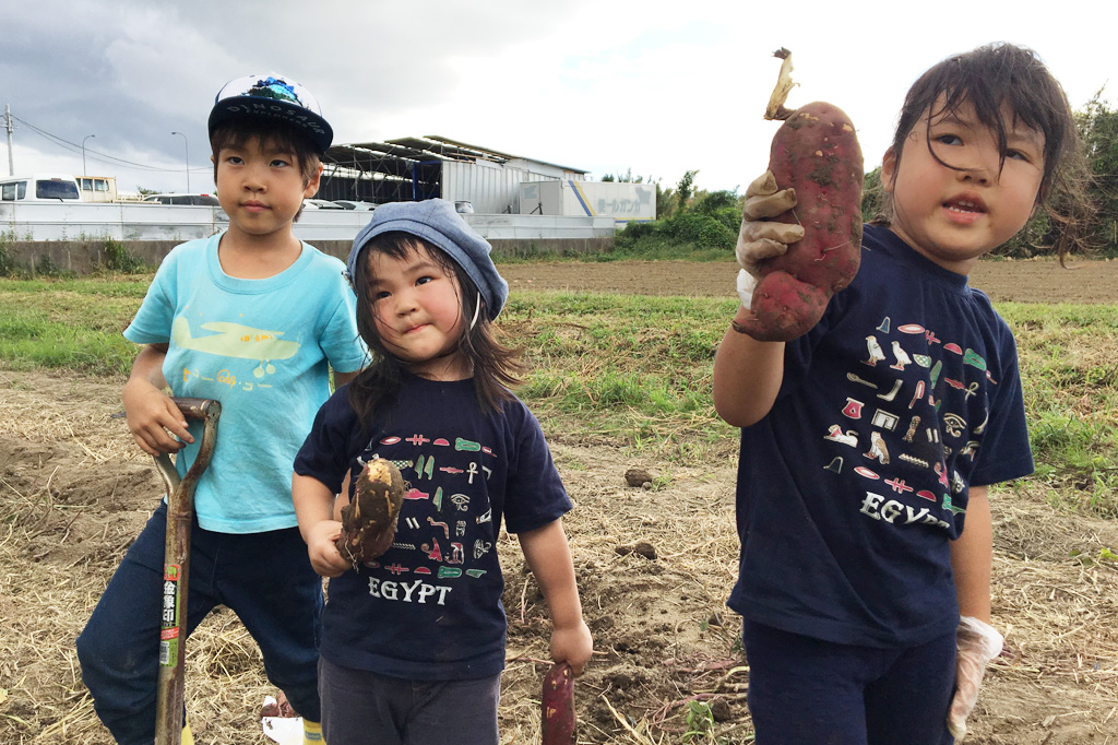 無農薬有機野菜の畑で、子どもは虫取りも楽しめます。