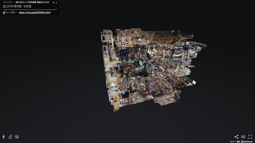 国立科学博物館の日本館、地球館それぞれの展示室全体を高画質画像で撮影。パソコンやスマートフォンを使って、まるで博物館の中にいるような気分が3Dビューで味わえます。