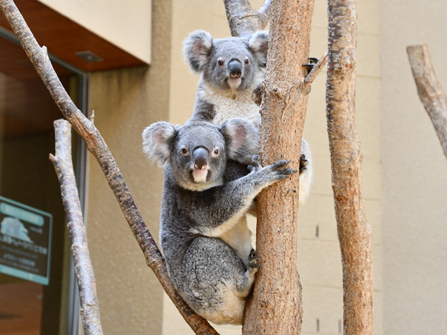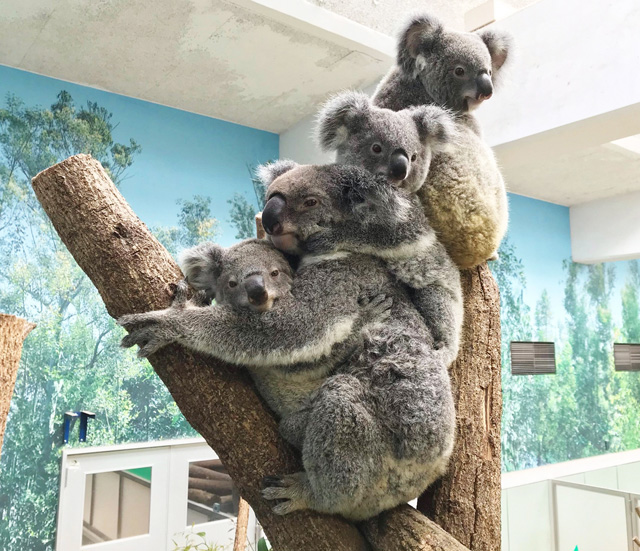 “ぼたん”が2019年に神戸市立王子動物園からやって来て最初に展示場に入ったときの、ほかのコアラとのやりとりが可愛いんです。詳しくは公式サイトのこぼれ話「ただいま、練習中」を見てみてください。