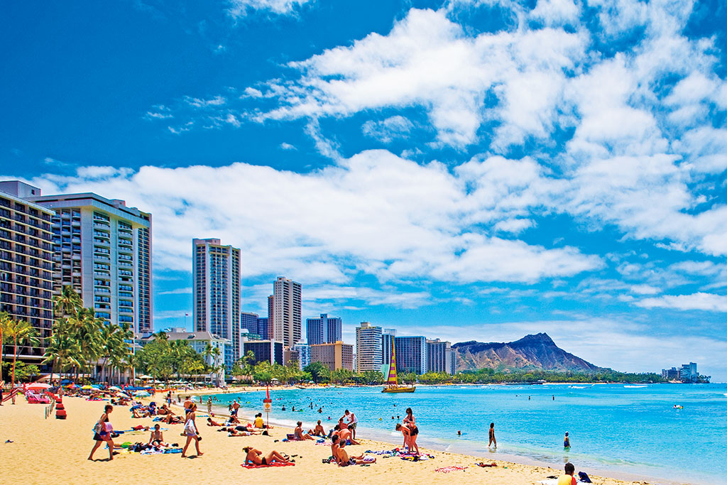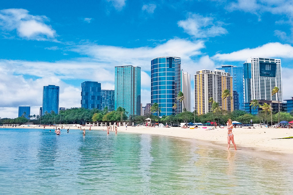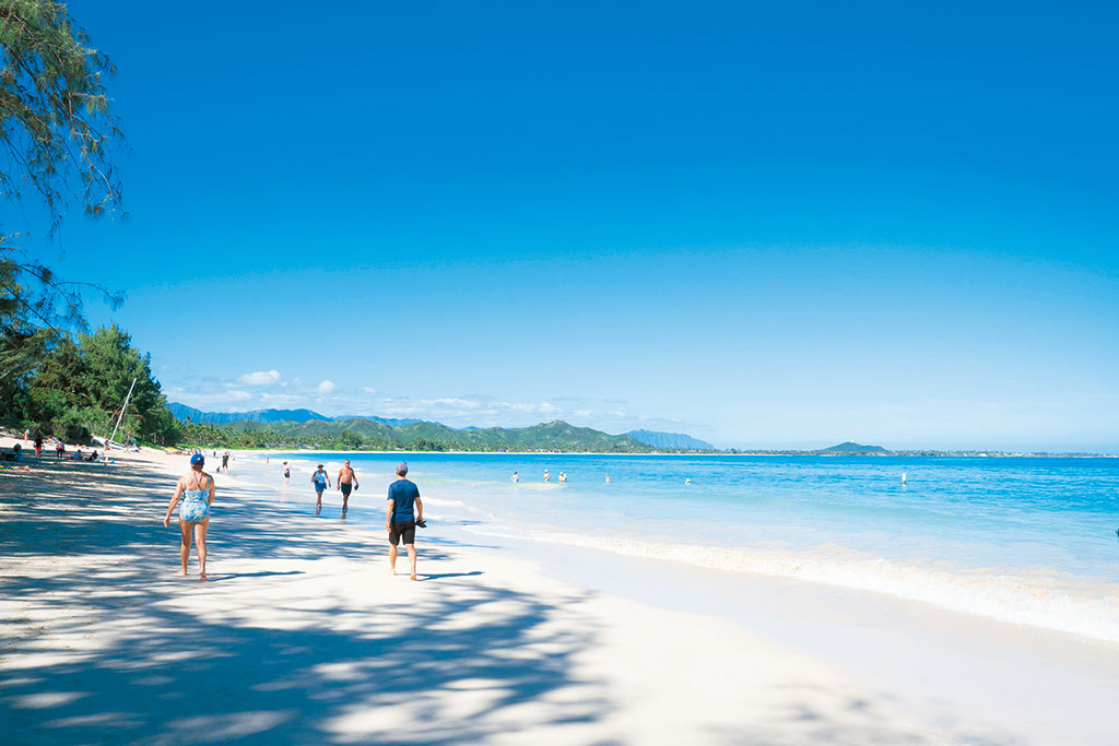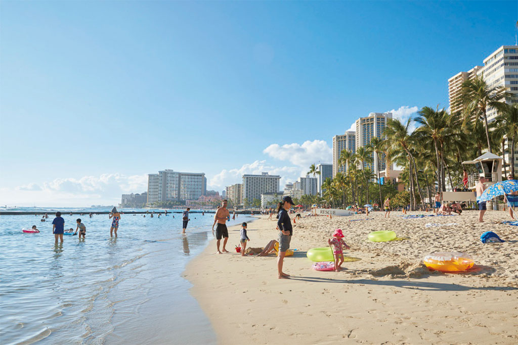 ハワイへ来る観光客が真っ先にやってくるワイキキビーチ。実はこの有名なビーチは「ヒルトン・ハワイアン・ビレッジ・ワイキキ・ビーチ・リゾート」から「ニューオータニ・カイマナ・ビーチ」までの、東西約3㎞に延びる砂浜の総称で、それぞれ一定の区間ごとに別のビーチ名が付いているんです。ショップやレストラン、水着のままでも利用できるフードトラックなど便利な施設がいっぱいなので、小さな子ども連れにはぴったり!