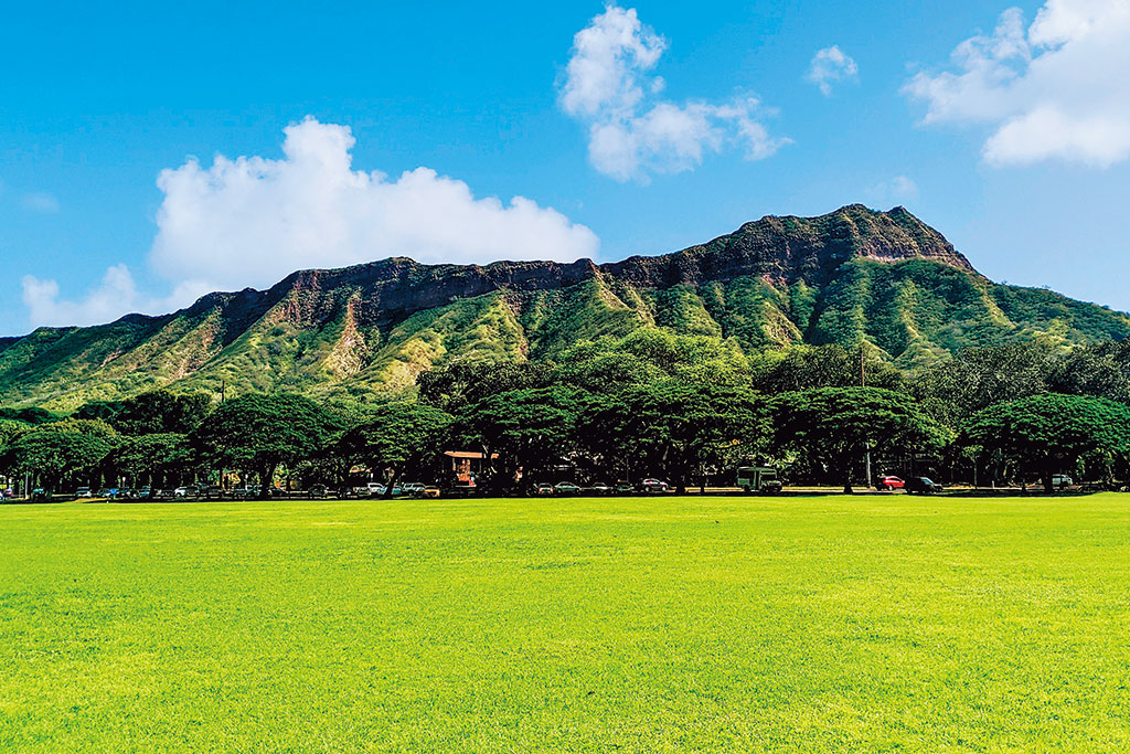 カラカウア通りを東に進んだ先にある公園で、ダイヤモンドヘッドを望む絶好のスポット。ジョギングやサッカー、ヨガなど、さまざまに楽しむことができる広大な公園は、ホノルル市民にとっての憩いの場。ワイキキから歩いて行けるので、海辺をお散歩しながら訪れてみて。木陰のテーブルでピクニックも素敵です。