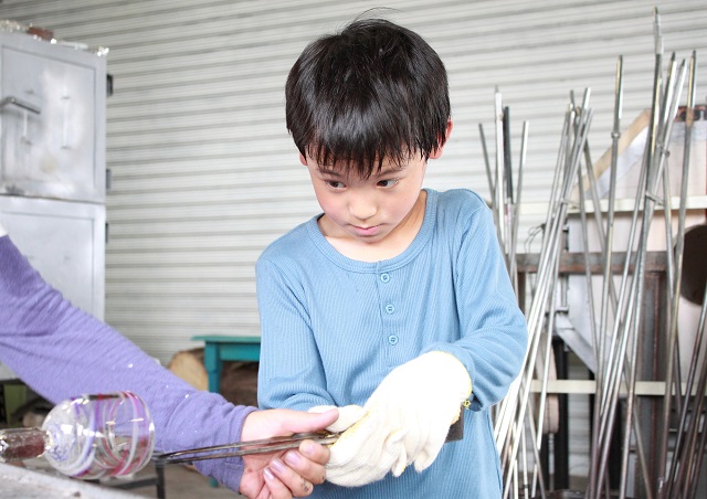 琉球ガラス作り体験に娘とチャレンジ。先生がていねいに教えてくれたので、安心して取り組めました。作品も本格的な仕上がりで、いい記念になりましたよ。