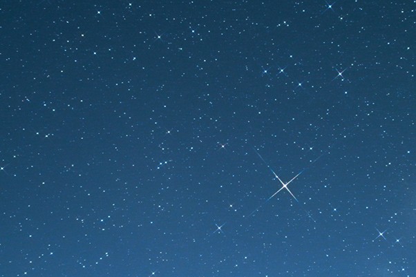 シリウスは−1.5等級という非常に明るい星で、青白くキラキラと輝いて見えます。オリオン座の三つ星から南東の低い位置を探すと、ひときわ明るく光る星がシリウスです。