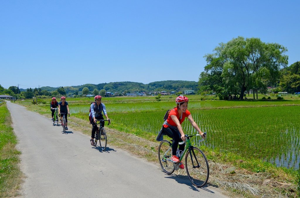 サイクリング体験では、電動アシスト付きクロスバイクがレンタル可能。ダウンヒルも楽しめるループコースは、「日本で最も美しい村」連合にも加盟が認められた美観を誇る小砂(こいさご)地区を中心に、農村の美しい棚田の間を中心に回ります。