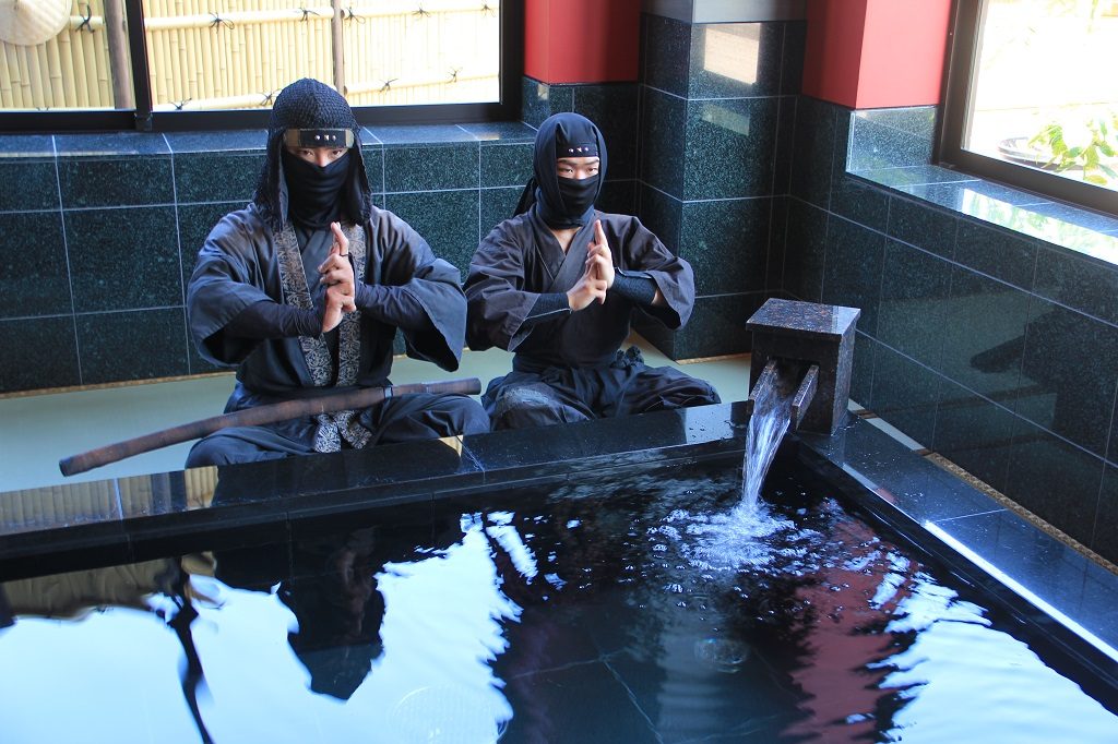 忍者体験で疲れた体は、天然温泉「安土城下の湯」で癒しましょう。全面が畳敷きのお風呂、傷に良いといわれているバナナの葉を浮かべた「バナナ葉風呂」、血行促進効果が期待できる「高濃度炭酸水素イオン泉」などの珍しいお風呂で日頃の疲れも解消されるでしょう。